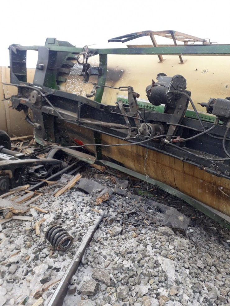 Сход цистерн и вагонов произошел 26 февраля в 11.55 на железнодорожной станции Улпан Шалкарского района. Официальный представитель МЧС Талгат Уали сообщил, что произошел сход 22 грузовых цистерн из 43 вагонов с последующем опрокидыванием 13 цистерн и повреждением железнодорожного полотна протяженностью 150 метров. Жертв и пострадавших нет.