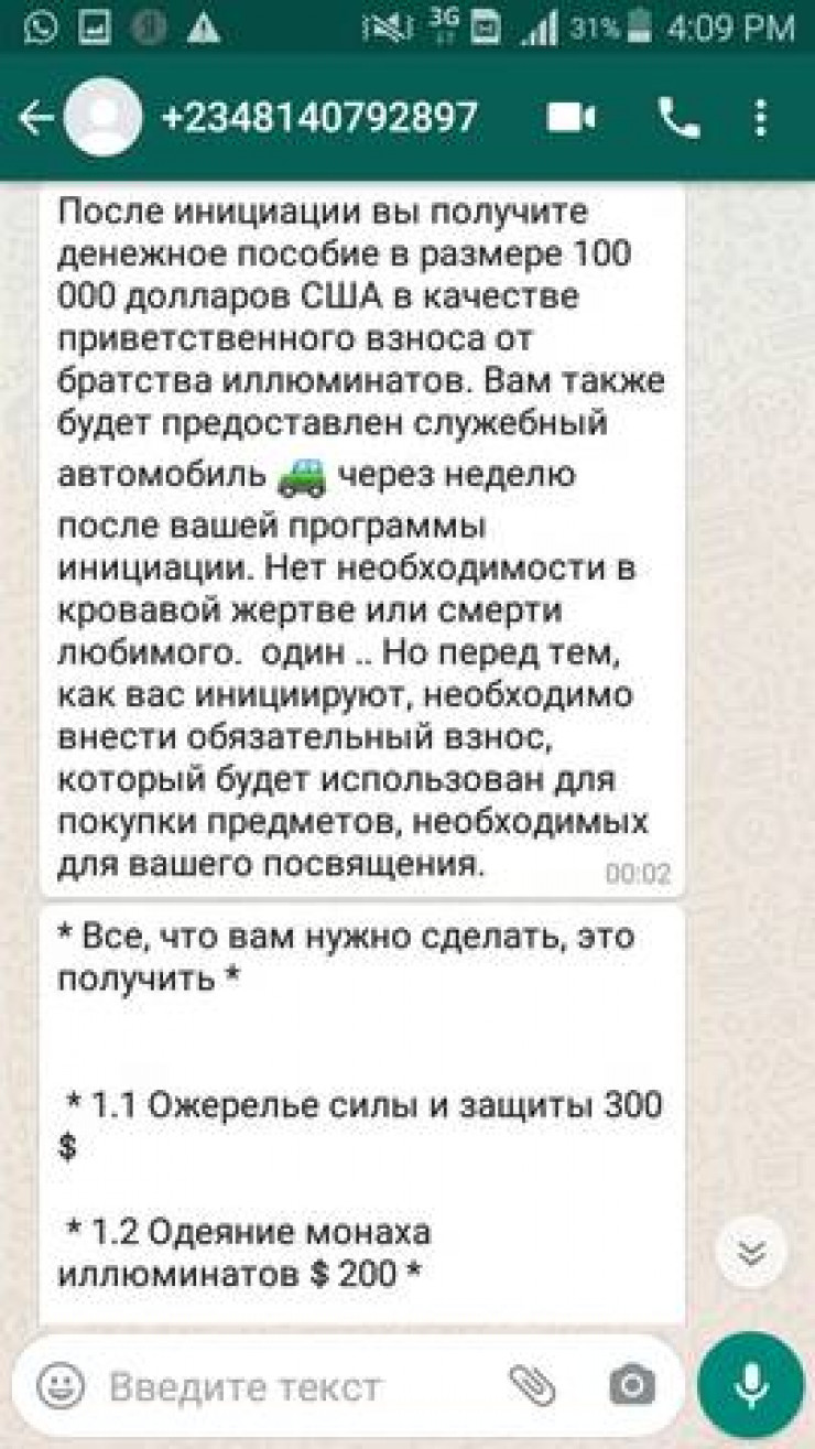 В мессенджере WhatsApp жителю Актау Михаилу предложили стать членом тайной организации. Он решил согласиться и посмотреть, как сложится его дальнейшая судьба после вступления в тайное общество, передает Tengrinews.kz со ссылкой на Lada.kz.