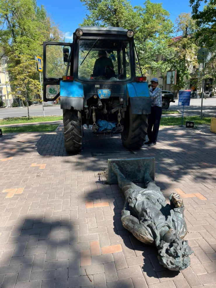 В социальных сетях появились фотографии, на которых видно, как трактор снес памятник.