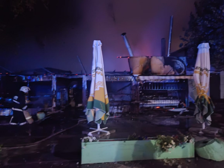 "По прибытии первых пожарных расчетов через 6 минут, происходило горение одноэтажного кафе открытым пламенем на территории рынка на площади 260 квадратных метров. Создалась угроза распространения огня на примыкающие строения", - сообщили в департаменте.