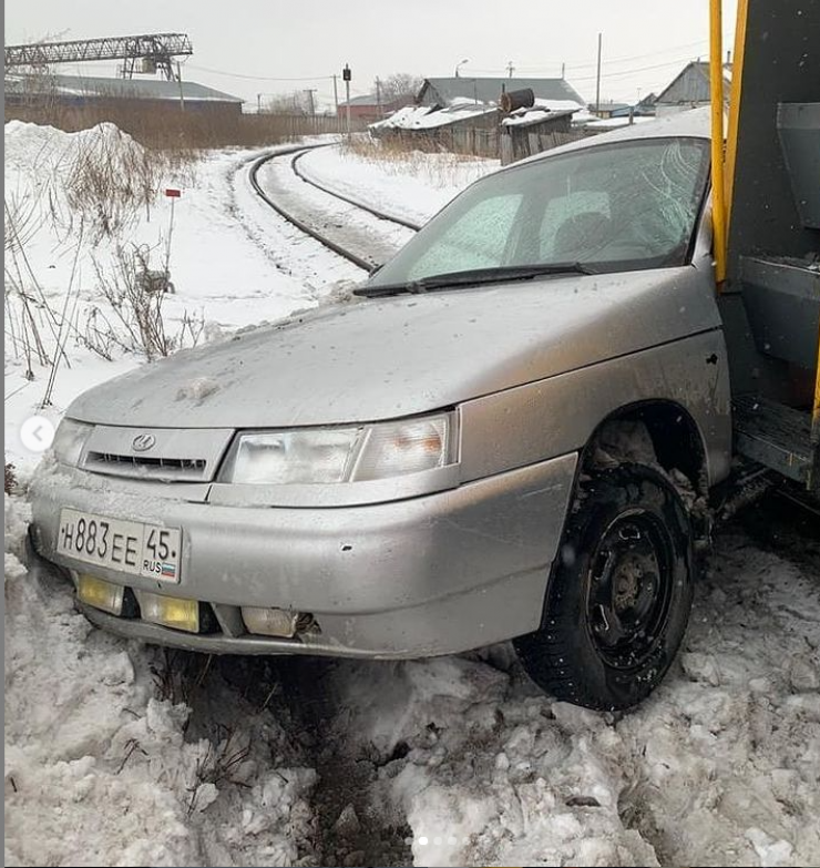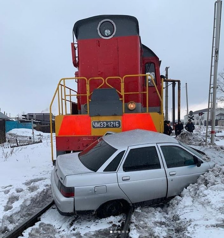 Тепловоз врезался в легковой автомобиль в Петропавловске Фото с сайта pkzsk.info
