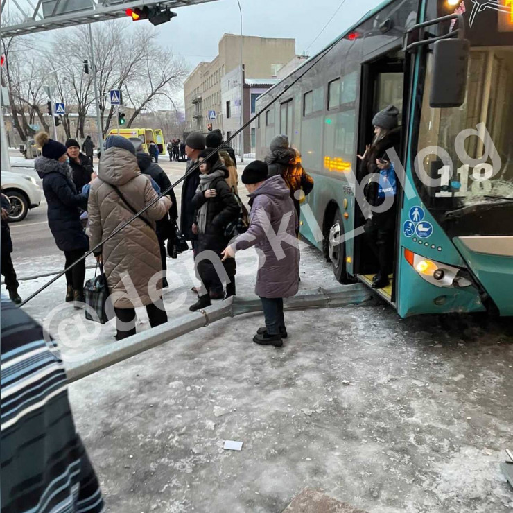 Водитель автобуса, грубо нарушив правила, сбил пешехода и врезался в столб в Караганде Фото: Instagram / denski_blog