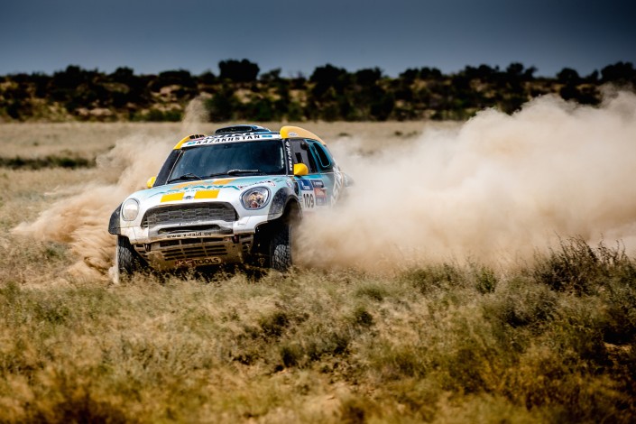 Казахстанские экипажи финишировали с седьмого по девятое места в следующем порядке: Бауыржан Исабаев, Юрий Сазонов и Айдын Рахимбаев. На восьмом этапе пилот экипажа под номером 109 Бауыржан Исабаев занял седьмое место. Несмотря на жару и пески, ему удалось не только сохранить свой результат, но и улучшить его на четыре позиции. Следующий девятый этап Урумчи и Хами будет направляться на восток, где степи, леса, горы и каменистые поверхности сменятся классическими песками и дюнами.