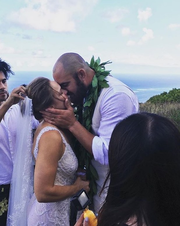 Свадьба 30-летней Ронды и 35-летнего Трэвиса состоялась на Гавайях в минувшие выходные. На невесте было белое платье с открытой спиной и кружевами от модельера Galia Lahav, а ее супруг выбрал для церемонии белую рубашку и бежевые брюки.