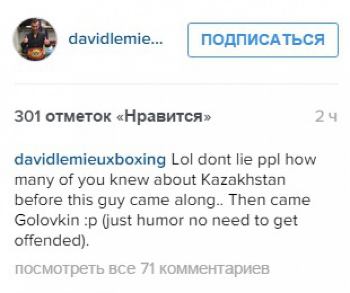 Бірақ кейін Лемье бұл жазбасын парақшасынан өшіріп тастады. Осындай мәлімдеме жасап, Головкиннің қытығына тиюі Лемьеге пайда әкелмеді. Көп ұзамай боксшылар рингте кездесіп, Головкин техникалық нокаутпен жеңген.