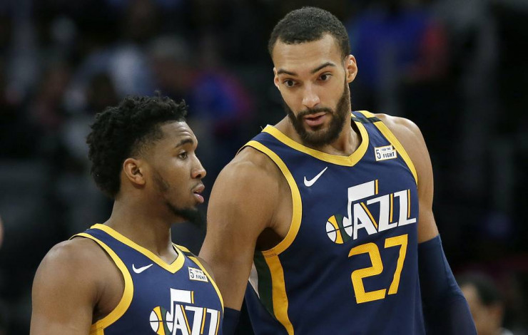 Руди Гобер мен Донован Митчелл. © AP Photo