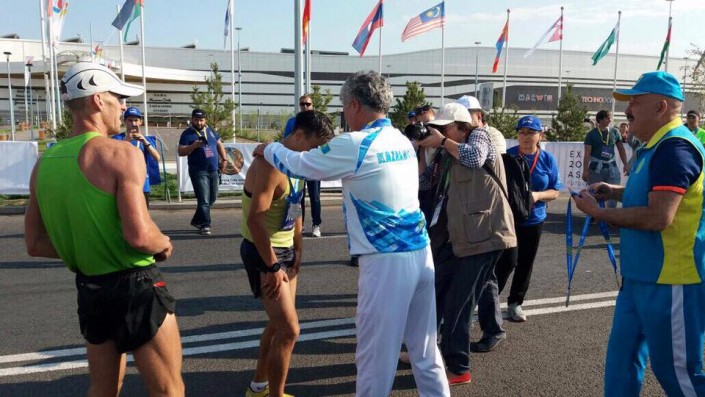 "Достарым, добрый день! Только что пробежал Астанинский международный марафон ШОС и СВМДА 2017! Грандиозное мероприятие, особенная атмосфера! Почти 6000 участников! Желающих было вдвое больше, из-за обеспечения мер безопасности на мероприятии не смогли всех зарегистрировать. Но и это многих не остановило! Многие, как, к примеру, мой сын Жандос, побежали незарегистрированными, по принципу "главное - участие".