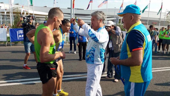 Также на этой дистанции пробежали генеральный менеджер велокоманды Astana Pro Team Александр Винокуров и боксер Канат Ислам.
