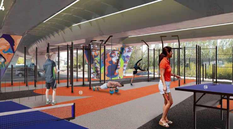 Спортивная зона появится под мостом около ЕНУ имени Гумилева в Нур-Султане, передает Tengrinews.kz со ссылкой на Управление архитектуры, градостроительства и земельных отношений.