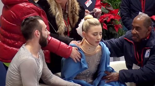 После проката Эшли пришлось обратиться за медицинской помощью. На шею ей надели фиксатор, а во время оглашения оценок американка сидела с приложенным к голове пакетом льда.