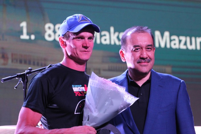 Также призы участникам IRONMAN 70.3 Astana вручали Айдын Рахимбаев и первый вице-президент федерации Даурен Жаксыбек.