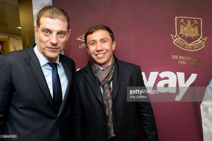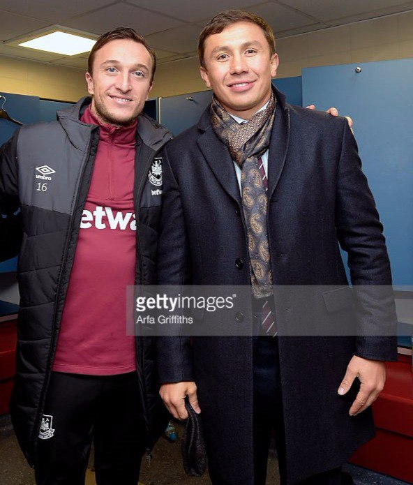 Чемпион мира в среднем весе по версиям WBA (Super), IBO, IBF и WBC (Interim) казахстанский боксер Геннадий Головкин (34-0, 31 КО) посетил матч "Вест Хэм Юнайтед" - "Манчестер Сити", который проходил в Лондоне.
