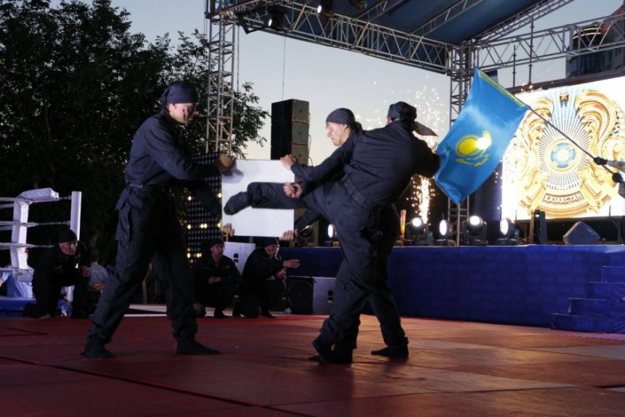 Национальный фестиваль боевых искусств продолжает свое торжественное шествие по регионам Казахстана. Восьмым по счету городом, принявшим спортивный флешмоб, стал Атырау, передает Tengrinews.kz.
