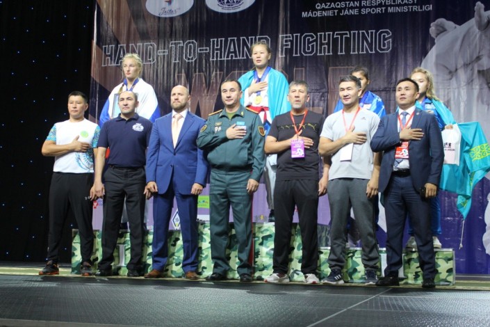 В ходе торжественной церемонии закрытия генерал-майор Мурат Бектанов зачитал приветственный адрес председателя Всеказахстанской ассоциации рукопашного боя – министра обороны Нурлана Ермекбаева.