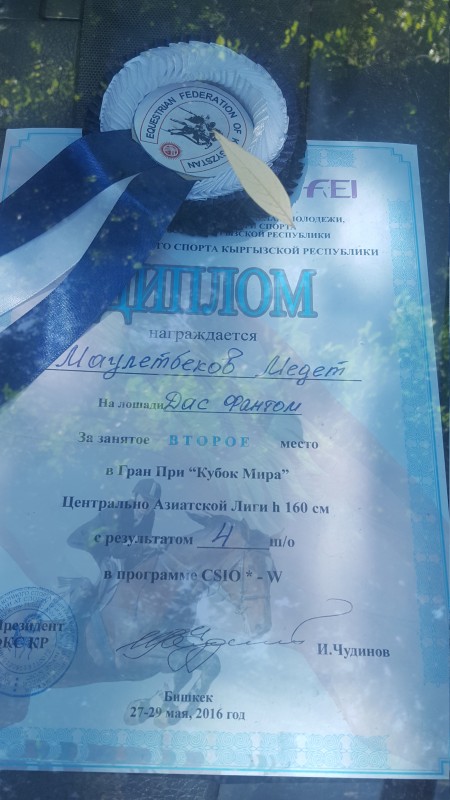 Казахстанец Медет Маулетбеков занял второе место на этапе Кубка мира по конному спорту, проходящем в Кыргызстане с 27 по 29 мая, передает Tengrinews.kz со ссылкой на Федерацию конного спорта Казахстана Церена Чумашкаева.
