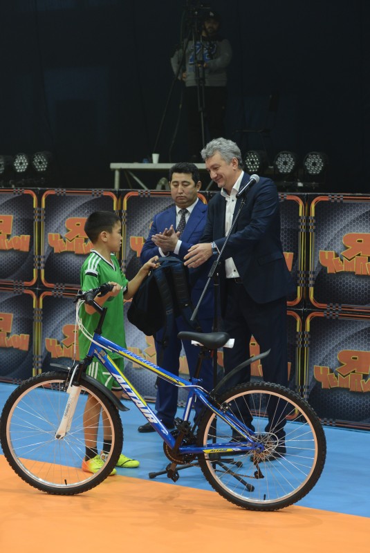 На официальном награждении победителей 4 ноября Айбатыру вручили велосипед. Кроме того мальчика признали лучшим игроком. По итогам игры между двумя командами он получил статуэтку "Звезда матча".