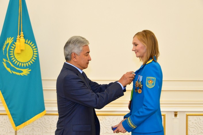В Астане министр обороны РК Имангали Тасмагамбетов чествовал легкоатлетку, бронзового призера Олимпийских игр в Рио-де-Жанейро, капитана ЦСКА МО РК Ольгу Рыпакову, передает корреспондент Tengrinews.kz со ссылкой на пресс-службу ведомства.