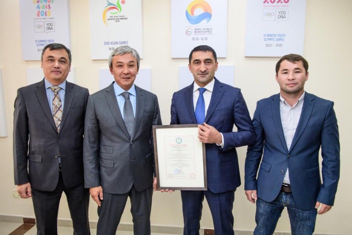 Генеральный секретарь НОК Сакен Мусайбеков вручил президенту Ассоциации пенчак силата Гаджи Гаджиеву сертификат о признании в Казахстане данного единоборства.