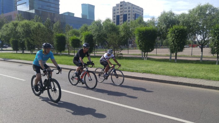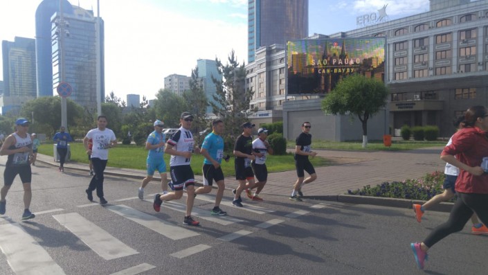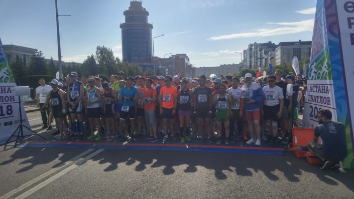 Девять часов утра, одна из главных улиц столицы возле "Байтерека" перекрыта. Через несколько минут здесь дадут старт турниру по дуатлону. Перед началом забега на разные дистанции участники разминаются и морально готовятся к началу соревнований.