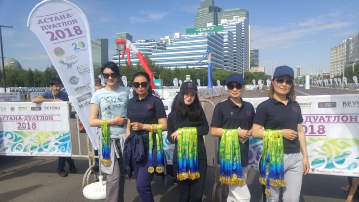 Также среди успешно преодолевших все дистанции: председатель совета директоров АО "Цеснабанк" Даурен Жаксыбек, глава Федерации футбола Астаны Малик Хасенов, директор ледового дворца "Алау" Санат Шапашов. Участников "Астана-Дуатлон" на финише приветствовал заместитель акима Астаны Ермек Аманшаев.