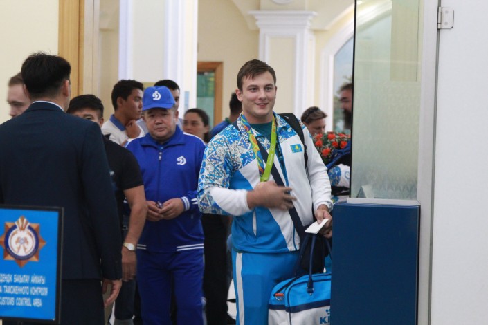Ночью 18 августа в международный аэропорт Алматы авиарейсом KL405 прибыли два представителя Олимпийской сборной Казахстана по тяжелой атлетике - бронзовый медалист Рио Александр Зайчиков и занявший четвертое место Денис Уланов. Корреспондент Tengrinews.kz встречал спортсменов в аэропорту.