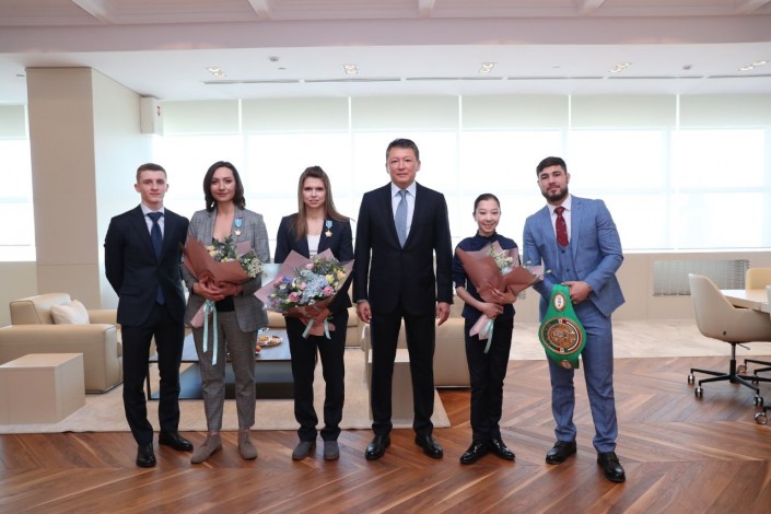 Президент НОК Казахстана отметил выдающиеся заслуги спортсменов, которые с начала этого года радовали болельщиков своими успехами. Так, помимо представителей команды по могулу, на встрече присутствовали казахстанская фигуристка Элизабет Турсынбаева, завоевавшая серебро престижного "Турнира четырех континентов", летающий лыжник Сергей Ткаченко, который стал призером на юниорском чемпионате мира в Лахти, и профессиональный боксер Садриддин Ахмедов, обладатель титула "молодежного" чемпиона мира по версии WBC в первом среднем весе.