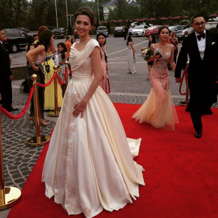 "Работает в национальной компании. Познакомились в Астане в одном из ресторанов, куда я хожу, до этого его не видела. Общались две недели, и он мне сделал предложение. Я очень долго ждала, когда придет такой человек и просто меня заберет. Так и случилось - пришел, увидел, победил! Вот уже 25 февраля его семья едет ко мне домой знакомиться с моими родителями и свататься. На Новый год он привез меня к себе домой, познакомил, у него очень хорошая мама, мы  сразу нашли общий язык, подружились! Свадьба у нас состоится 30 апреля в Алматы. Вообще интересная вещь получилась, я хоть в нумерологию не верю, но в нашей судьбе цифра 3 сыграла свою роль. Мы познакомились с ним 3 декабря  в 3 часа ночи, оба хотим троих детей. Хотели сыграть свадьбу 3 марта, но подумали, холодно будет, решили 30 апреля, цифра три тоже здесь присутствует. Также я поменяю три наряда за вечер, одним из которых будет свадебное платье от Naiyl Baikuchukov", - рассказала счастливая невеста.