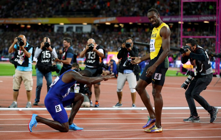 После забега зрители освистали американца, который по ходу карьеры был дважды дисквалифицирован за применение допинга. Сам же Гэтлин встал на колени перед Болтом, однако ямаец довольно быстро поднял его на ноги и спортсмены обнялись.