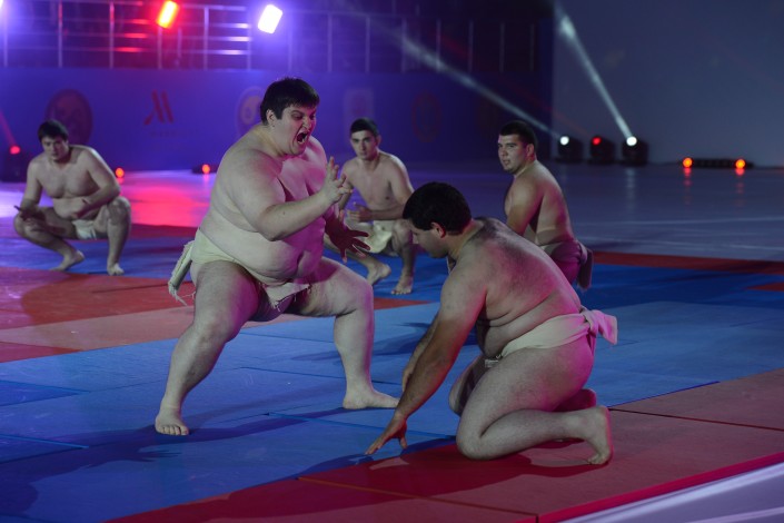 Всего в показательных боях и выступлениях участие приняли 250 спортсменов с мировыми именами из четырех стран. В этом году организаторы приготовили для зрителей немало сюрпризов. К примеру, гости смогли увидеть настоящее японское сумо или редкое искусство владения боевым оружием пекити-тирсия кали, а также ряд других дисциплин, которых не было в прошлом году.