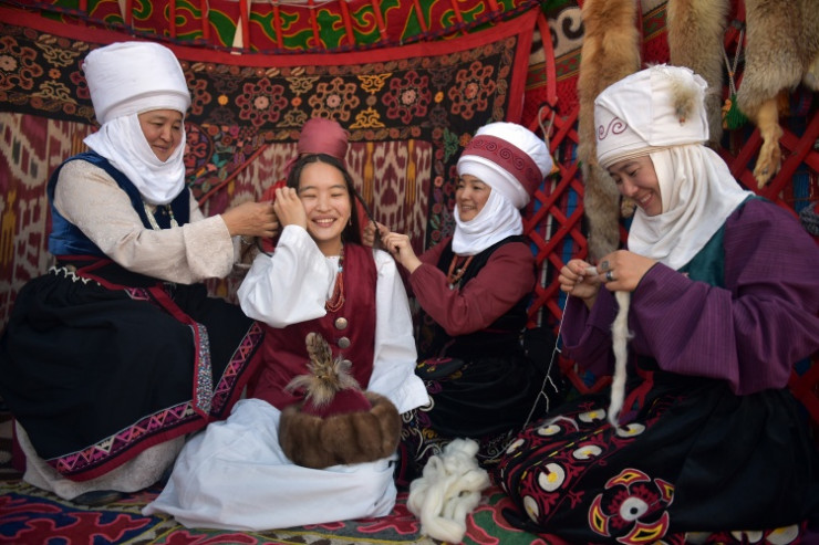Затем участники встречи посетили культурный центр "Дордой Номад" на Иссык-Куле. Там главам государств показали специально организованные игры кочевников и национальные обычаи и традиции кыргызского народа. Каскадеры продемонстрировали выездку скакунов и другие представления. Лидеры трех стран также ознакомились с работой "Аллеи ремесленников", где была представлена продукция местных мастеров.