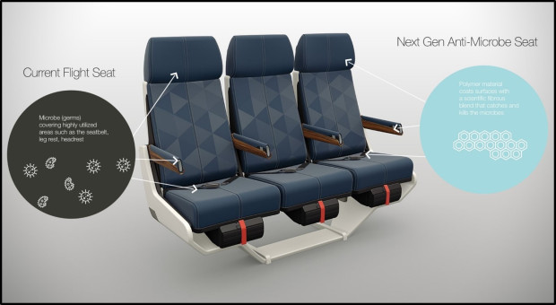 4. Среди претендентов на главные призы и "антивирусный чехол на сиденье" от компании Boeing. В нем использовано "полимерное покрытие нового поколения", которое можно надевать на подлокотники, столы для подносов и на сами сиденья. Новинка поможет снизить риск заболеть во время полета простудой и гриппом.