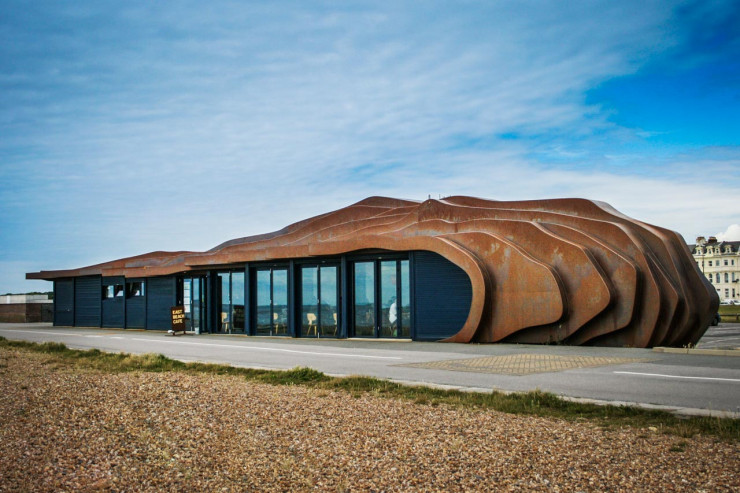 Томас Хезервик, автор пляжного кафе из железных листов, создал это заведение в Литтл-Хэмптоне. Владельцы кафе East Beach Cafe собирались спроектировать здание, которое было бы длинным и низким, что максимально увеличит возможность наблюдать за потрясающими видами на океан прямо из окна.