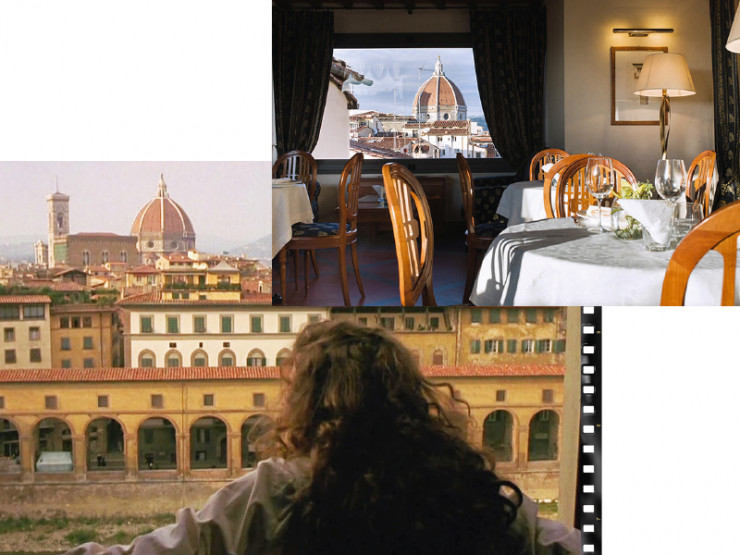 Для романтического сюжета режиссер Джеймс Айвори выбрал идеальные декорации: сказочная Флоренция, слепящее солнце и, главное, вид из окна номера Люси, который любезно уступили им с тетей молодой красавец Джордж Эмерсон и его отец. Картину снимали во флорентийском отеле Hotel degli Orafi (в фильме - Pensione Bartolini). Здание, где расположен отель, построено в XIII веке, когда-то в нем был монастырь.