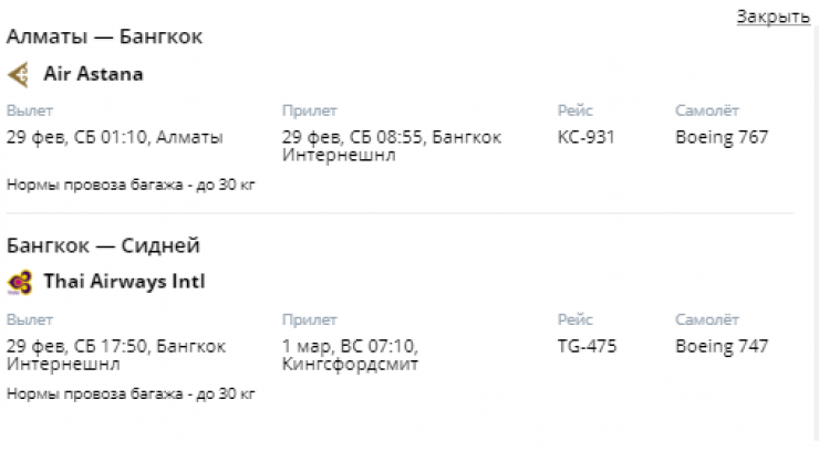 На Boeing 747 компании Thai Airways алматинцы могут попасть, взяв билет в Токио. Стыковочный рейс - в Бангкоке. Стоимость билета около 1,3 миллиона тенге.