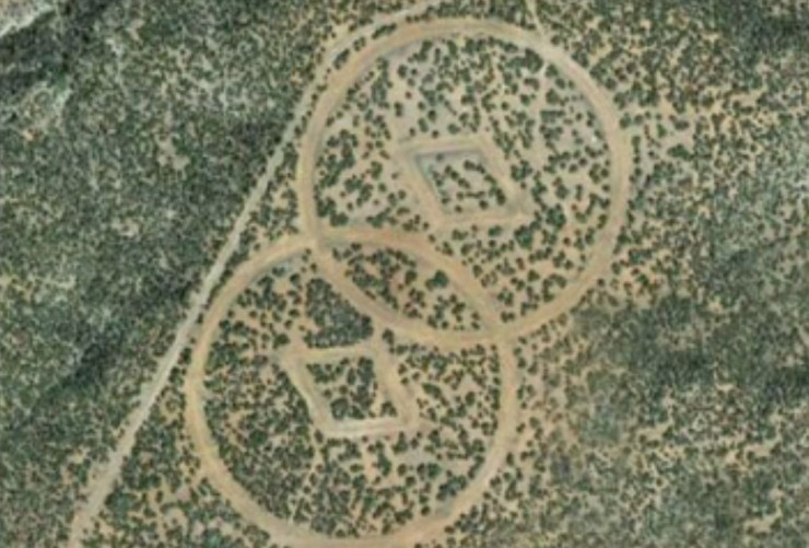 Странные круги карты Google обнаружили в иорданском оазисе Азрак. Считается, что это древние произведения искусства, состоящие из геометрических структур в форме колеса. Ученые считают, что им около 8500 лет и они, по видимому, расположены так, чтобы совпадать с восходом солнца в день зимнего солнцестояния.