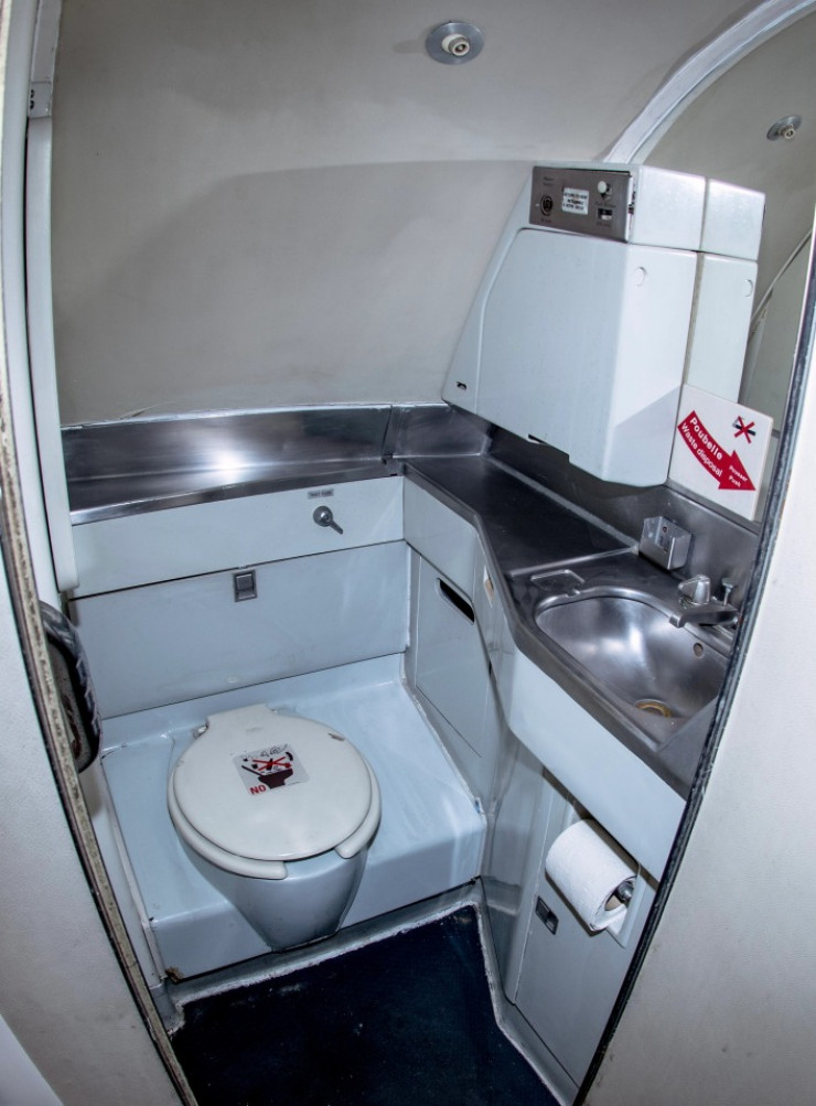Посетители попадают в самолет по посадочному трапу, а в салоне найдут оригинальные аксессуары: кресла, подвесные шкафчики и даже симулятор полета в кабине пилота.