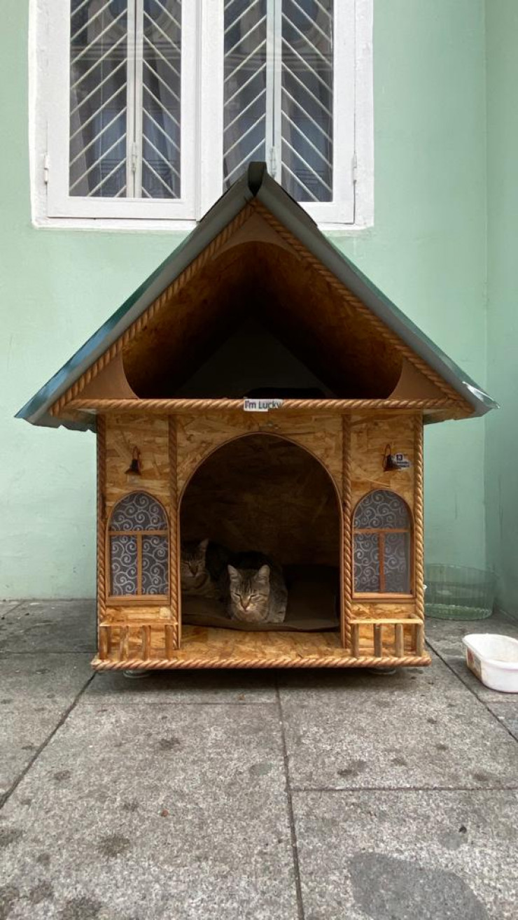 Никто здесь не выкидывает своих питомцев и не шугает бродяжек. Наоборот, кошек и собак кормят и даже строят им такие милые домики.