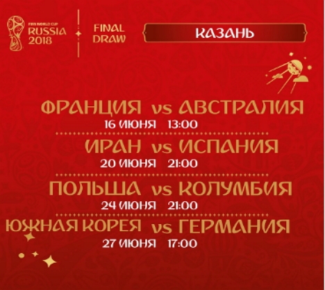 Так, первая игра состоится уже на второй день чемпионата - 16 июня, а последняя - 6 июля 2018 года.