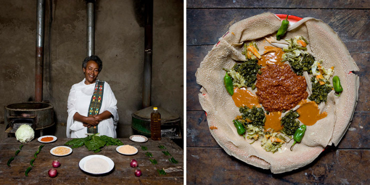 Бисрат, 60 лет, Эфиопия: энджера с карри и овощами