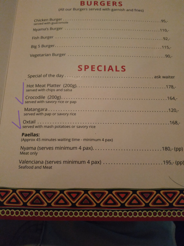 Фото меню из ресторана Намибии