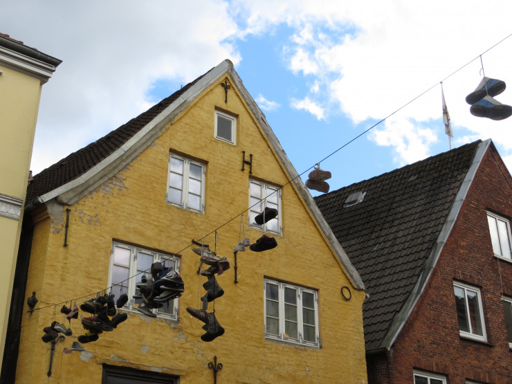 Есть что-то пугающее в прогулке по городу, когда над тобой болтаются сотни кроссовок или кед. А ведь их подвешивают не просто так. Дело в том, что есть целое направление искусства: граффити ботинками, или просто шофити. Изначально подобное действо задумывалось как художественный проект. Но есть и другая версия, которая гласит, что у мальчика, который взрослеет, обувь висит у его дома. Поэтому повзрослевшие подростки избавляются от надоевшей обуви именно так, забрасывая пару обуви на провода. Улица стала неофициальной достопримечательностью Фленсбурга, вдохновляя туристов внести свой вклад, оставив свои ботинки там же, на улице Нордерштрассе.