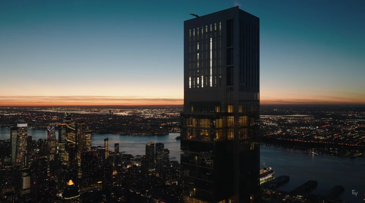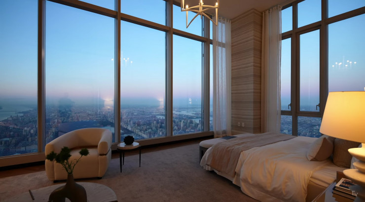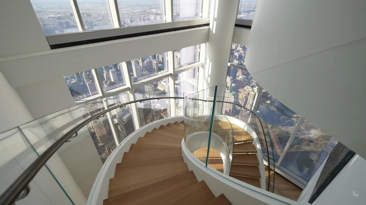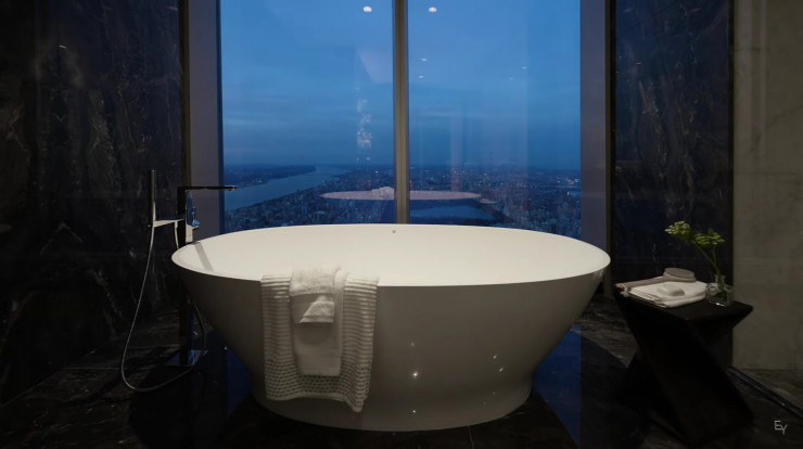 "Возвышающийся на 472 метра над Нью-Йорком, пентхаус на 129-м этаже самой высокой жилой башни на планете Central Park Tower имеет также самую высокую в мире открытую террасу на 133 квадратных метра. Императорские комнаты, частный бальный зал, стеклянные навесные стены, круговые панорамные окна с обзором на весь мегаполис и высокие потолки высотой 9 метров - и это еще не все, что есть в этом помещении", - так описывает свой опыт пребывания в пентхаусе видеоблогер.