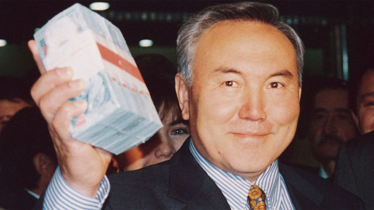 Нурсултан Назарбаев демонстрирует первый напечатанный в Казахстане миллион тенге во время открытия Банкнотной фабрики / Фото с сайта gazeta.ru