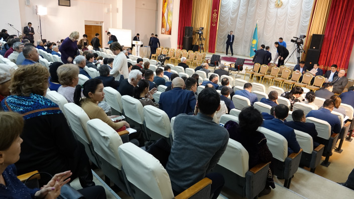 На часах 10. Зал затих. Прибывший Бакытжан Сагинтаев открывает встречу приветственным словом.
