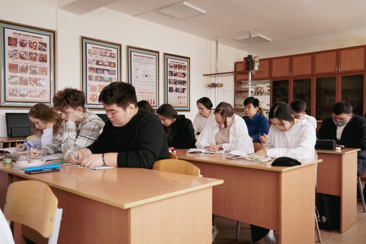 Сауле Маулыхановна ведет занятия, рассказывая студентам теоретическую часть.
