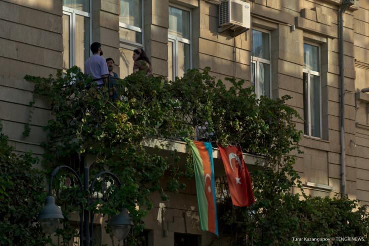 Интересный факт - флаги Азербайджана почти везде вешают рядом с флагом Турецкой Республики. На Турцию в целом азербайджанцы смотрят как на старшего брата.