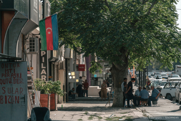 Днем в островках тени азербайджанцы играют в домино и попивают чай.