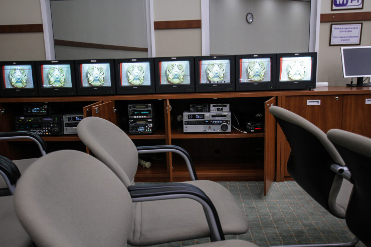 Пресс-центр в Мажилисе, куда транслируется заседание