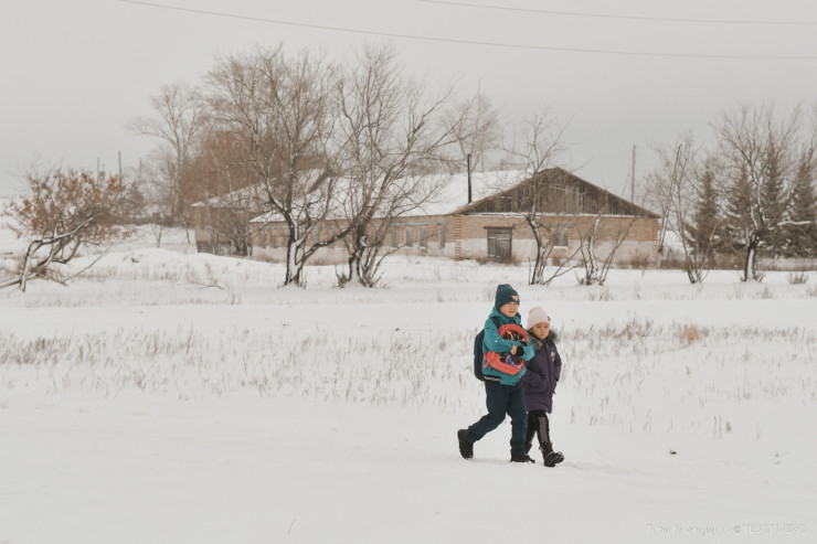 Замечаем проходящих мимо дома двух ребятишек. Оказалось, они только что приехали из школы вместе с учительницей, которая тоже живет в Шоккарагае.