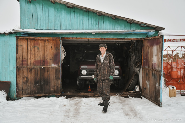 У одного из домов замечаем открытый гараж и чем-то занятого местного жителя. Представился он Василием, сказал, что работает лесником.